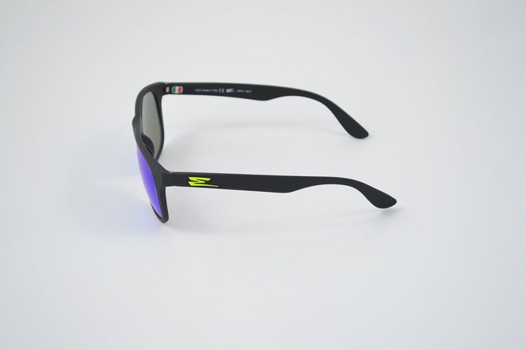 Descrizione : OCCHIALI DA SOLE TOTAL BLACK IN GOMMA VERNICIATA CON LENTI SPECIALI BLU.