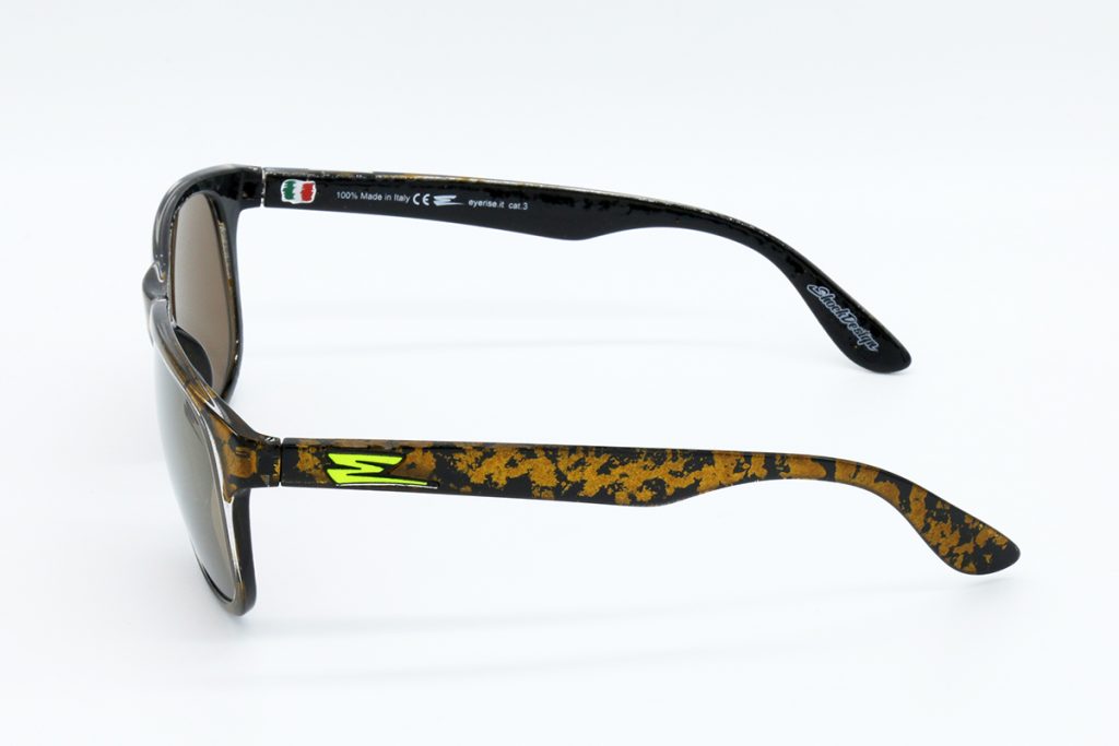 Descrizione:COLORE ORO ESPUGNATO IN 3D, LENTE SPECCHIATA BLU, FONDO DELL’ASTA FLESSIBILE.