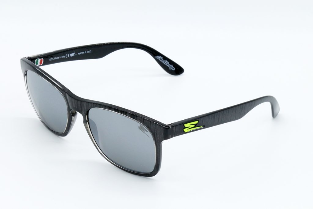 Descrizione: COLORE GRIGIO ANTRACITE GRIGIO METAL RIGATO, LENTE SPECCHIATA A SPECCHIO.