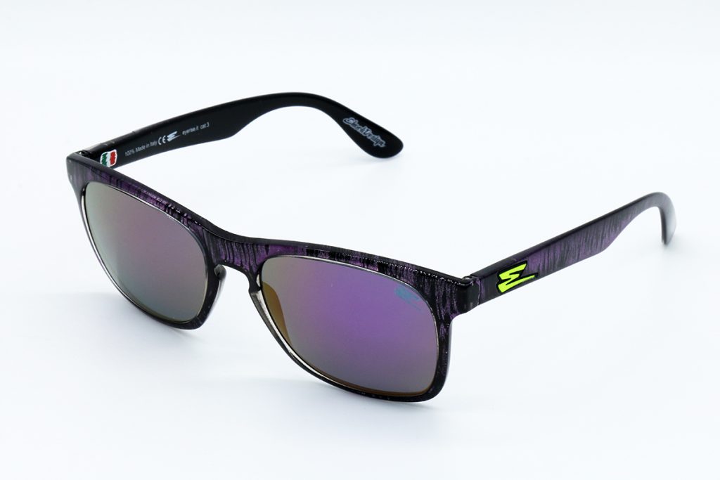 Descrizione:COLORE IN METALLO A RIGHE VIOLA, LENTE SPECCHIATA VIOLA.