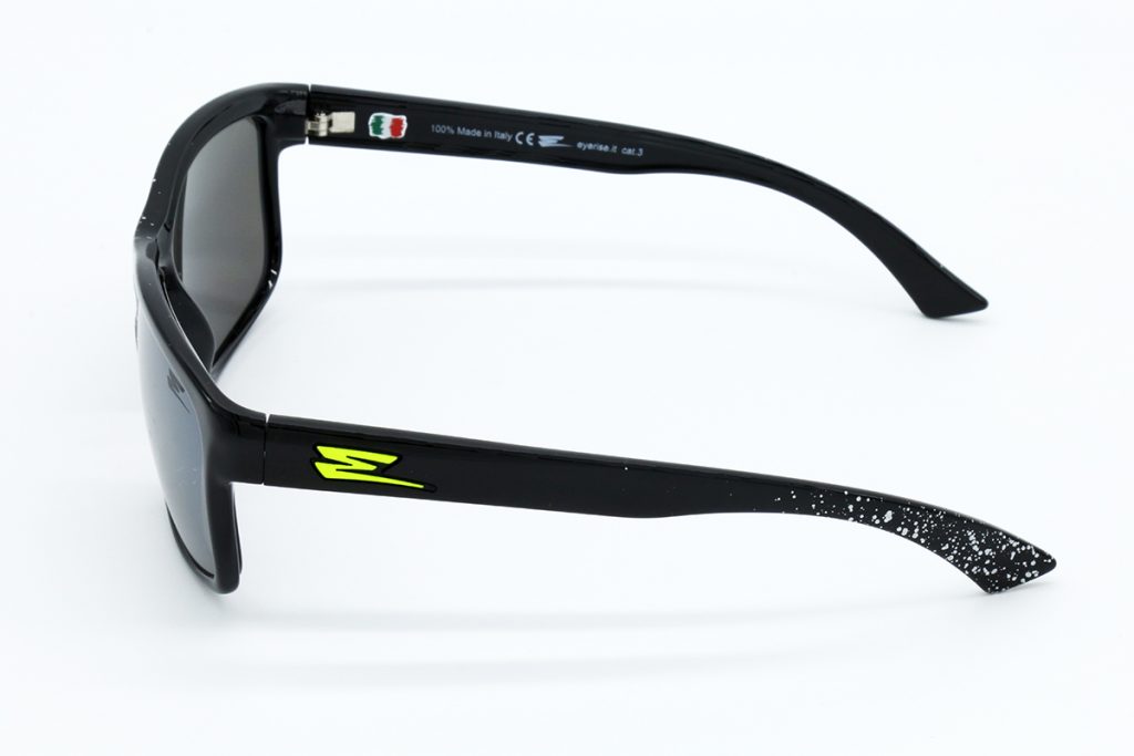 Descrizione:OCCHIALI CON BASE NERO LUCIDO, COLORE ARGENTO SPRUZZI NELLA PARTE CENTRALE E FINALE DELLE ASTE, LENTI A SPECCHIO.