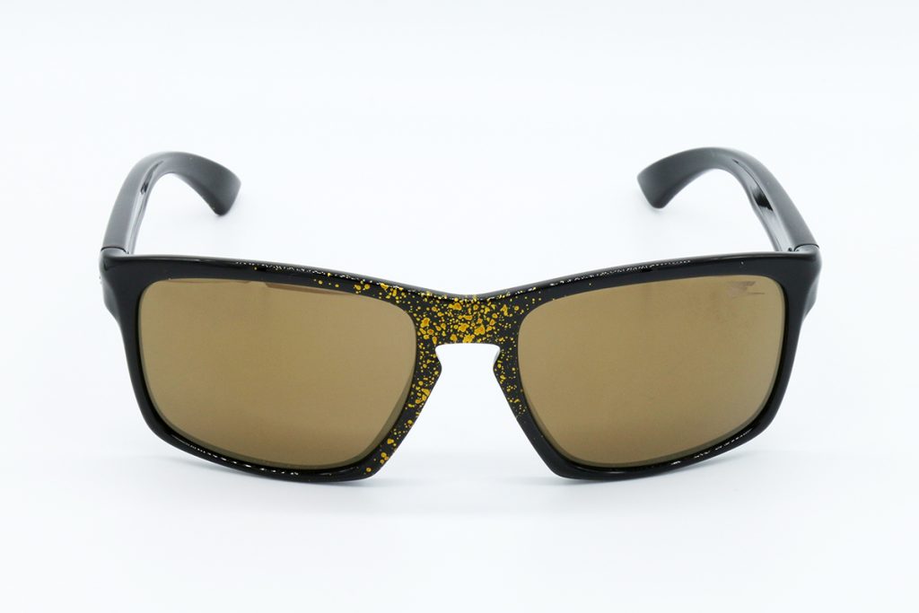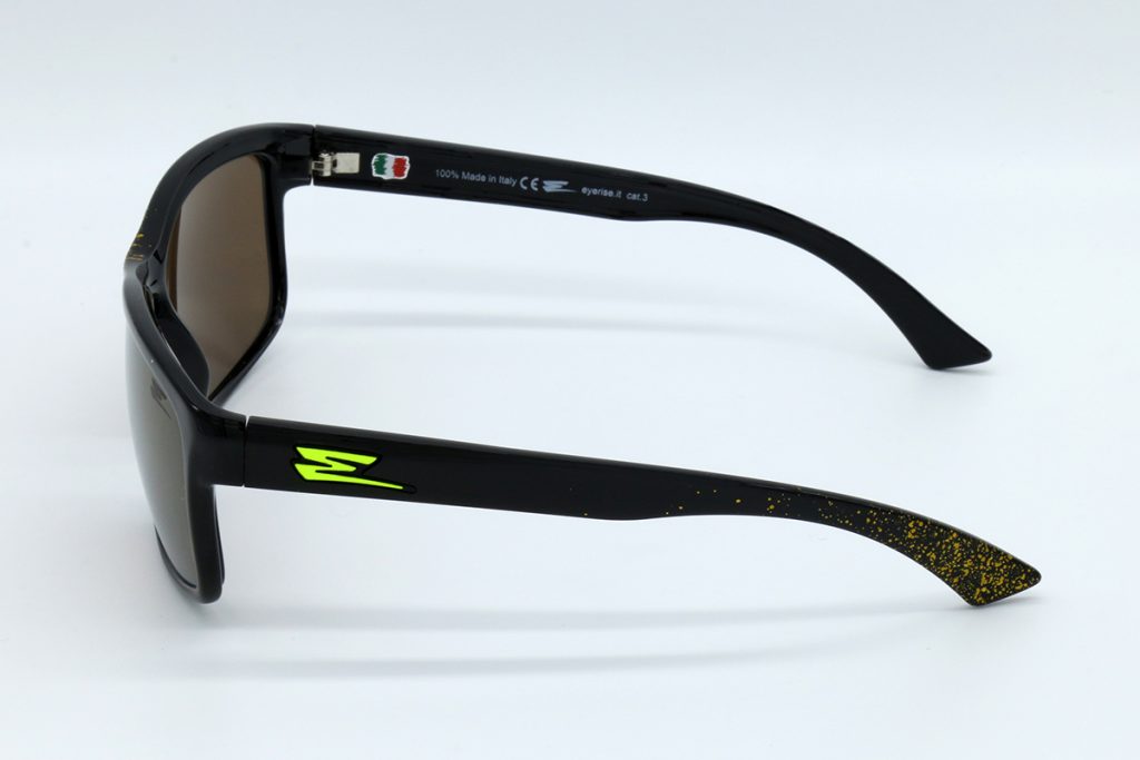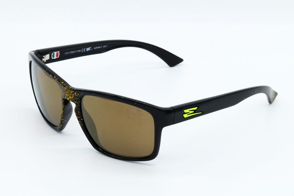 Descrizione: OCCHIALI CON BASE NERA LUCIDA, SPRUZZI ORO NELLA PARTE CENTRALE, E FINLA DELLE ASTE, LENTI SPECCHIATE ORO.