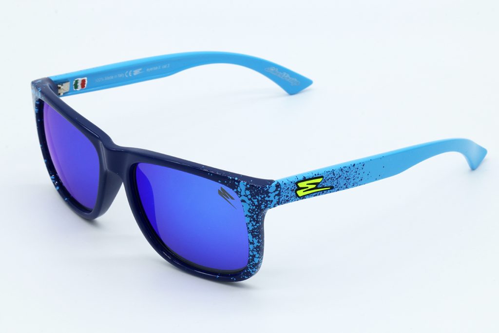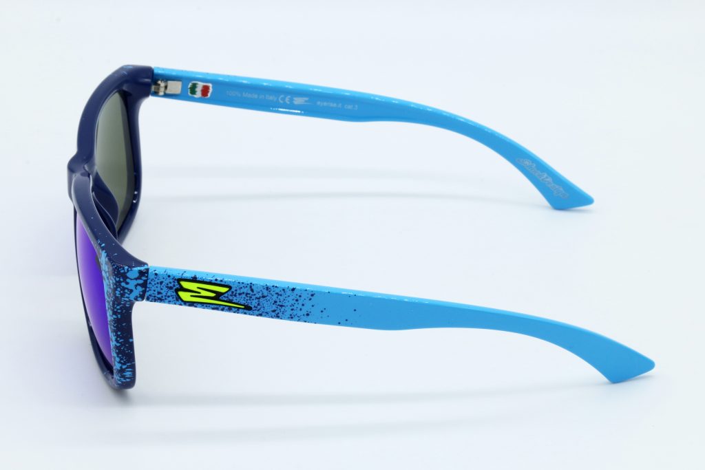 Descrizione: OCCHIALI BICOLORE CON BASE LUCIDA, IL FRONTALE MOSTRA UN BLU SCURO CON GOCCE AZZURRE CHE PRENDONO IL COLORE DELLE ASTE AZZURRE,