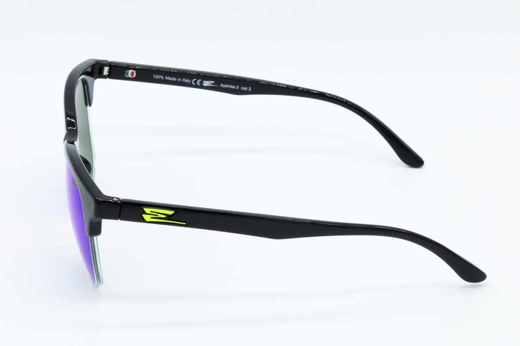 Descrizione: VETRI NERO LUCIDO LA PARTICOLARITA’ DEL FRONTALE LA FINITURA SOTTO LA PARTE FINALE DEL FRONTALE IN COLORE TRASPARENTE, LENTI BLU SPECCHIATE.